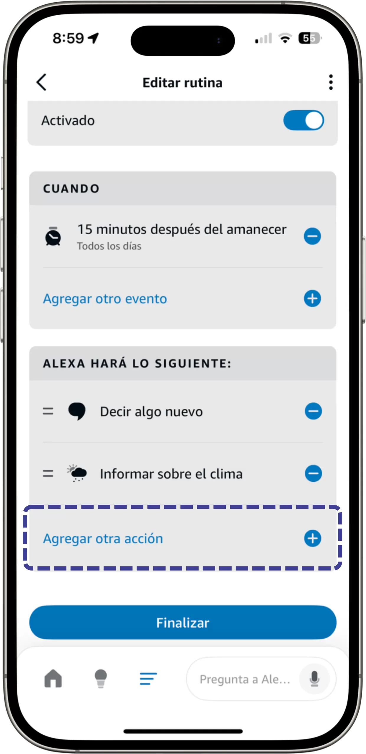 3 En la sección de Alexa hará lo siguiente haz clic en Agregar otra acción