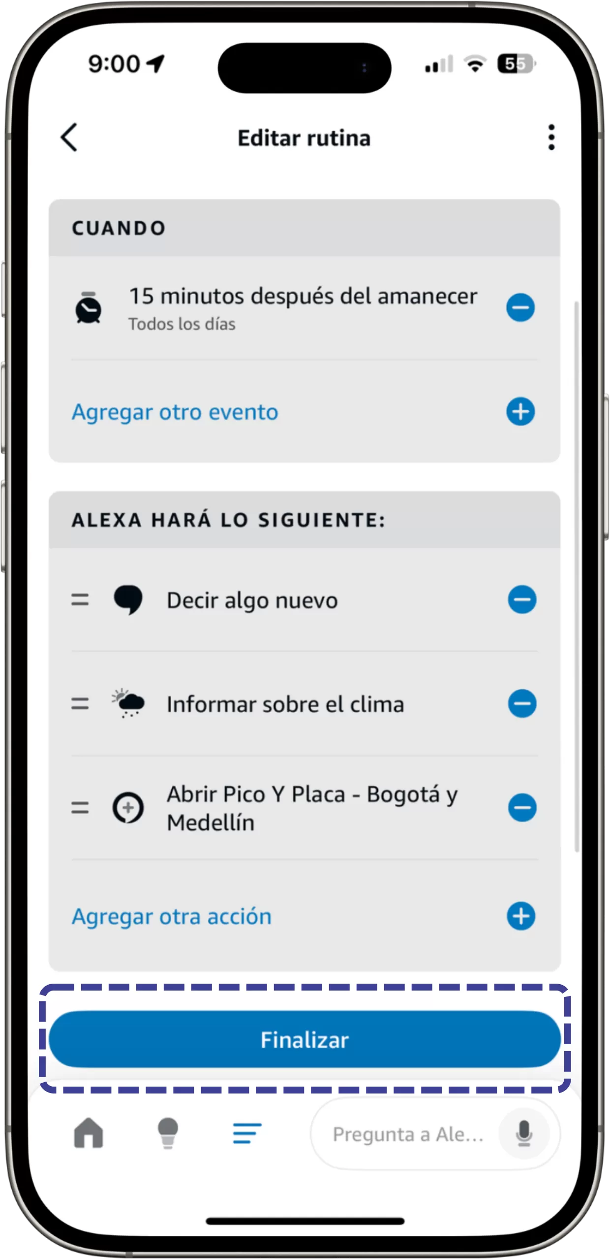 Agrega el widget a tus dispositivos Alexa con pantalla y consulta rápidamente el pico y placa del día.
